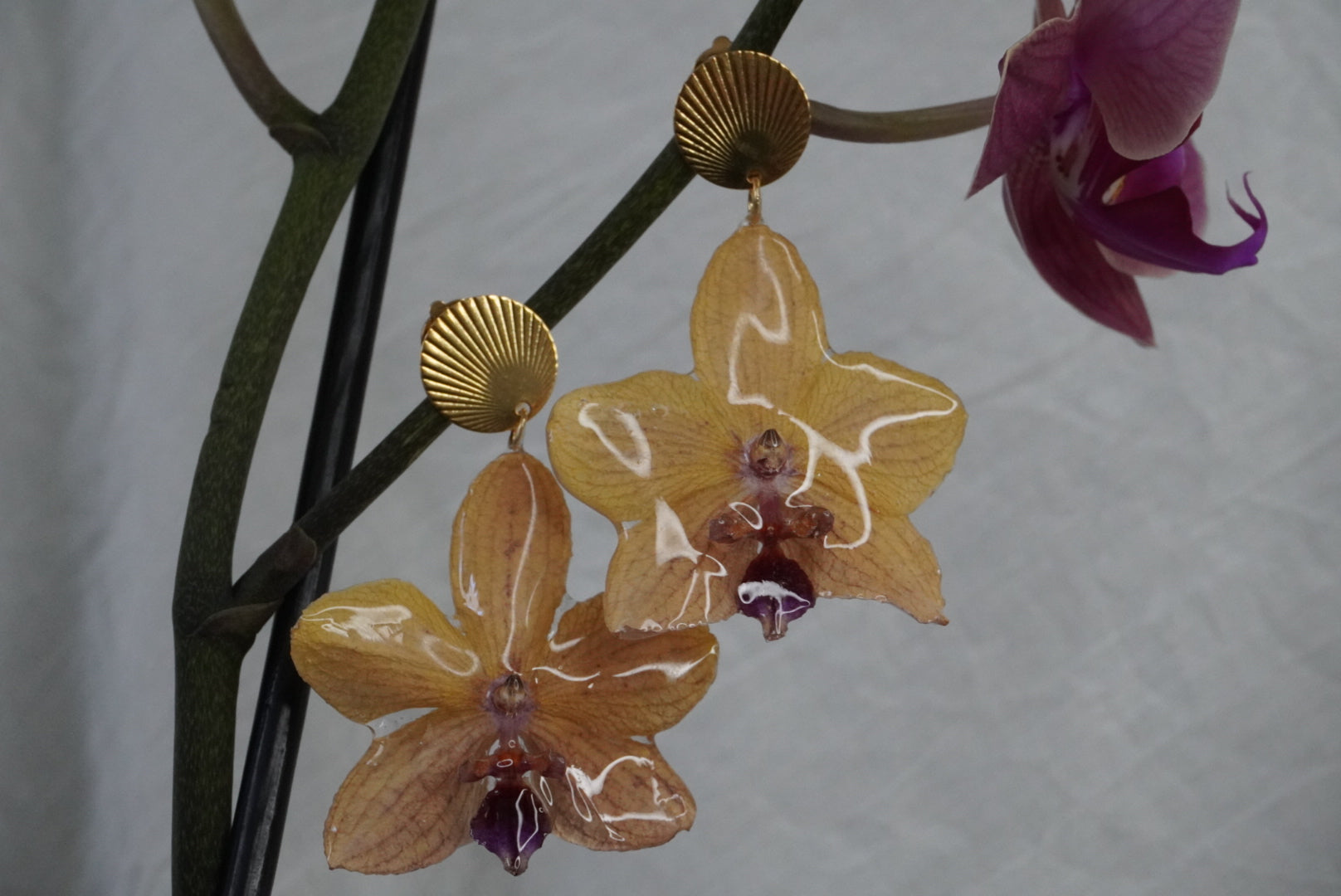 Boucle faite main avec des vrai fleurs sécher et conserver dans la résine