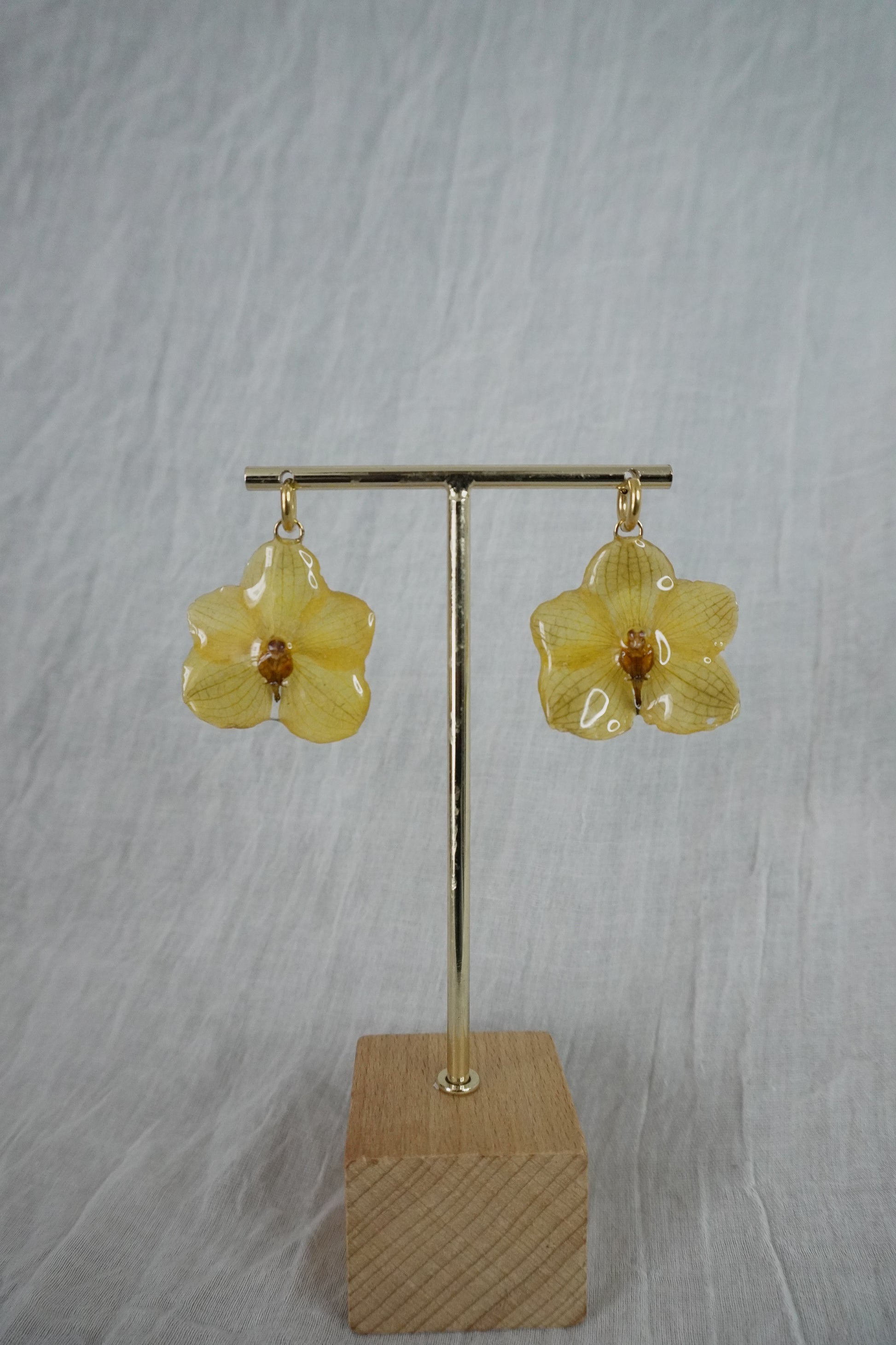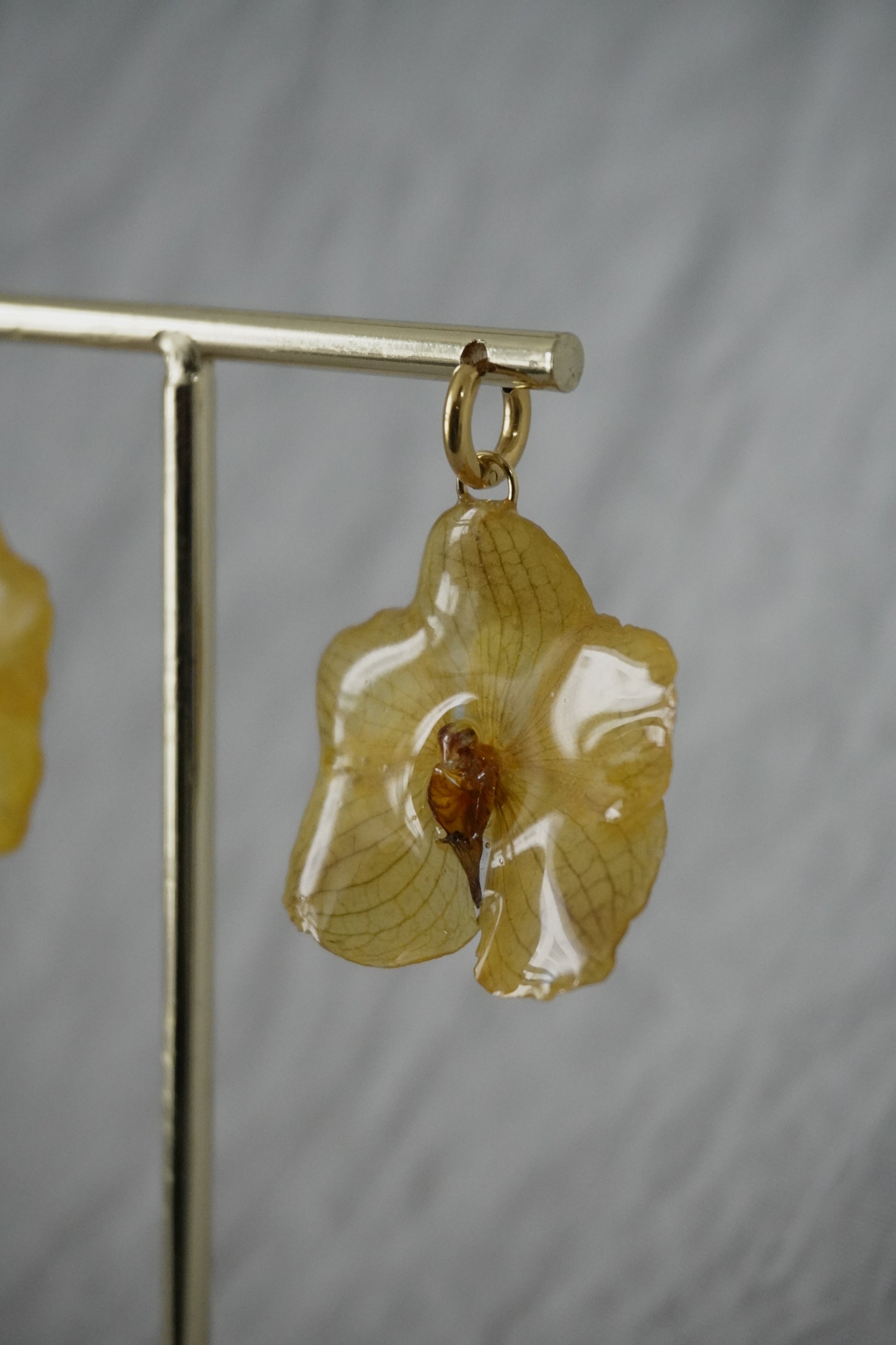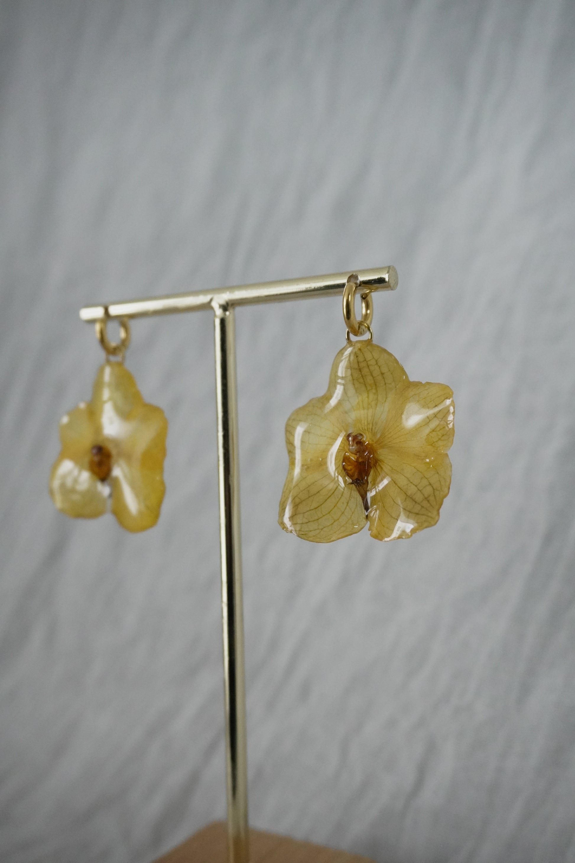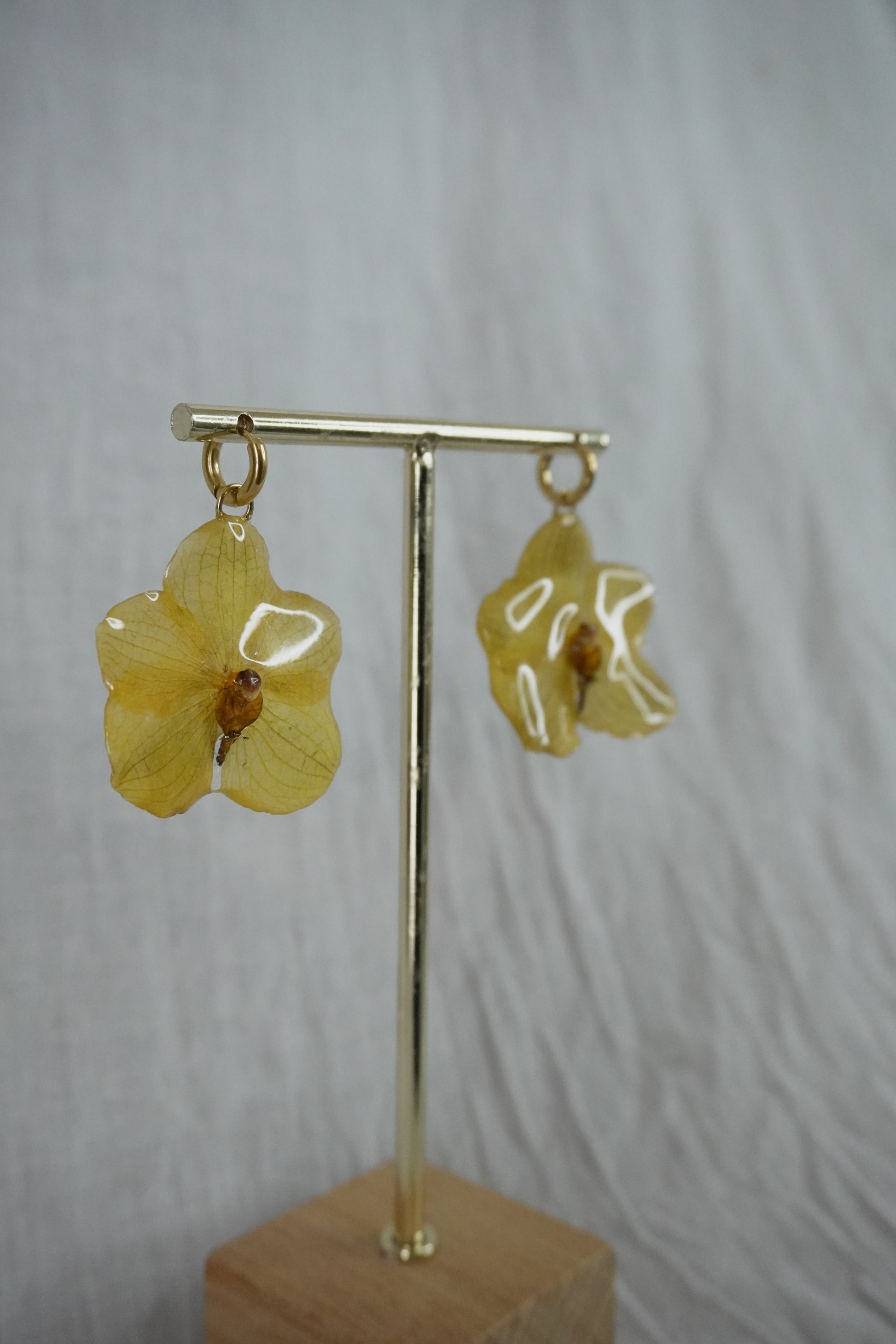 Ce bijou délicat est entièrement fait main, mettant en valeur de véritables fleurs séchées soigneusement conservées dans de la résine. Chaque création est unique : les fleurs, par leur forme et leurs nuances naturelles, rendent chaque bijou absolument singulier.