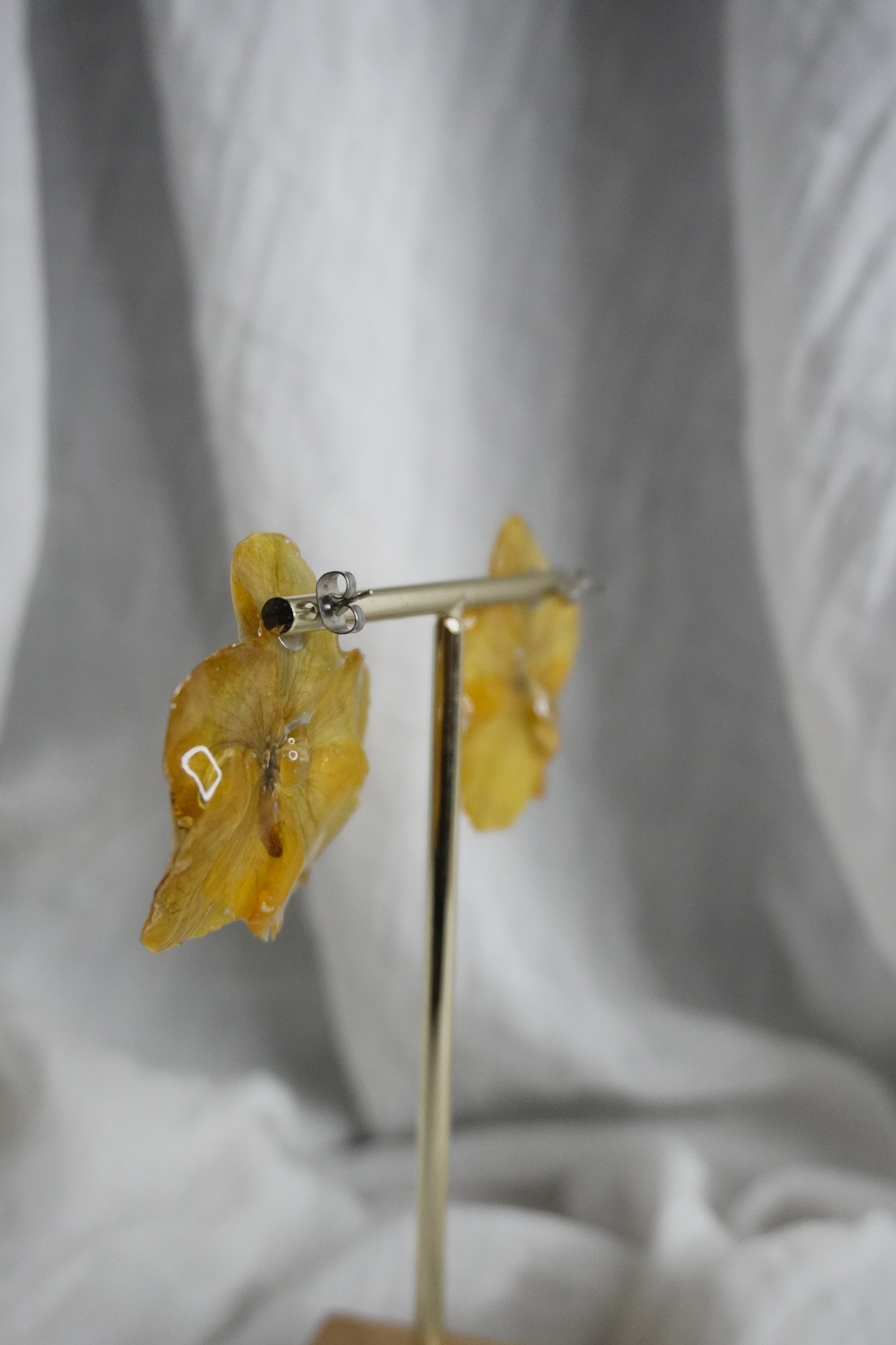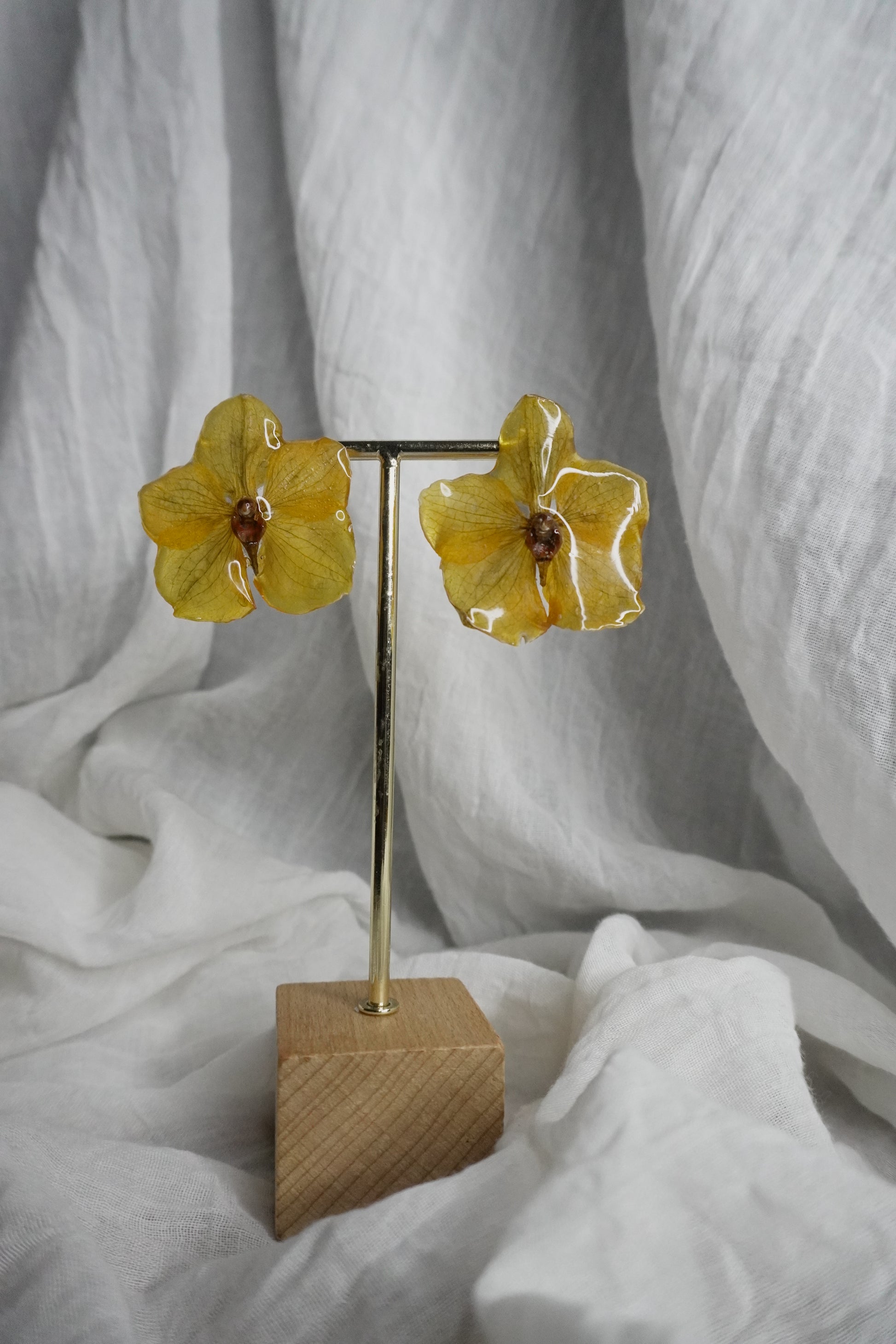 Ce bijou délicat est entièrement fait main, mettant en valeur de véritables fleurs séchées soigneusement conservées dans de la résine. Chaque création est unique : les fleurs, par leur forme et leurs nuances naturelles, rendent chaque bijou absolument singulier.