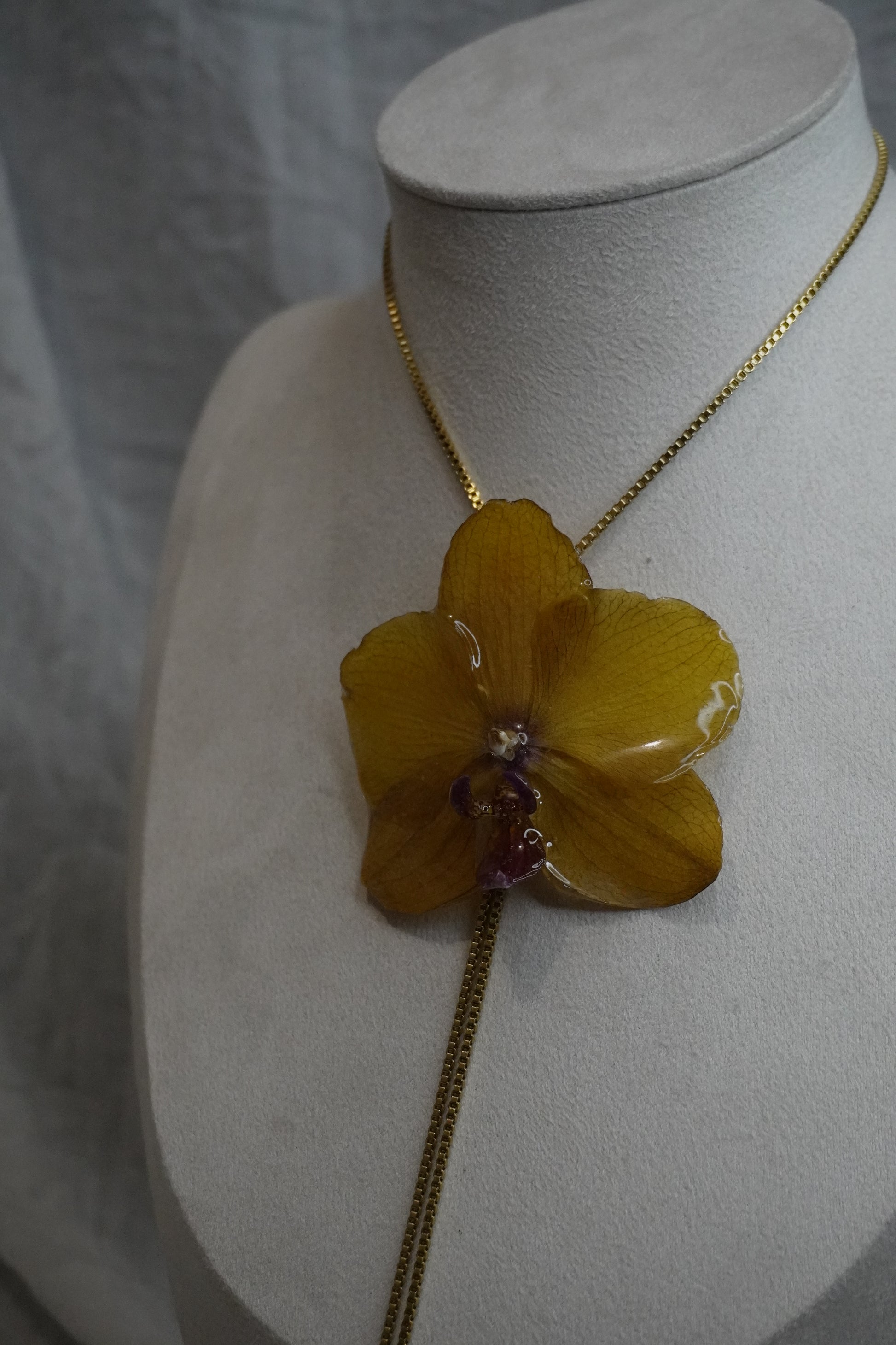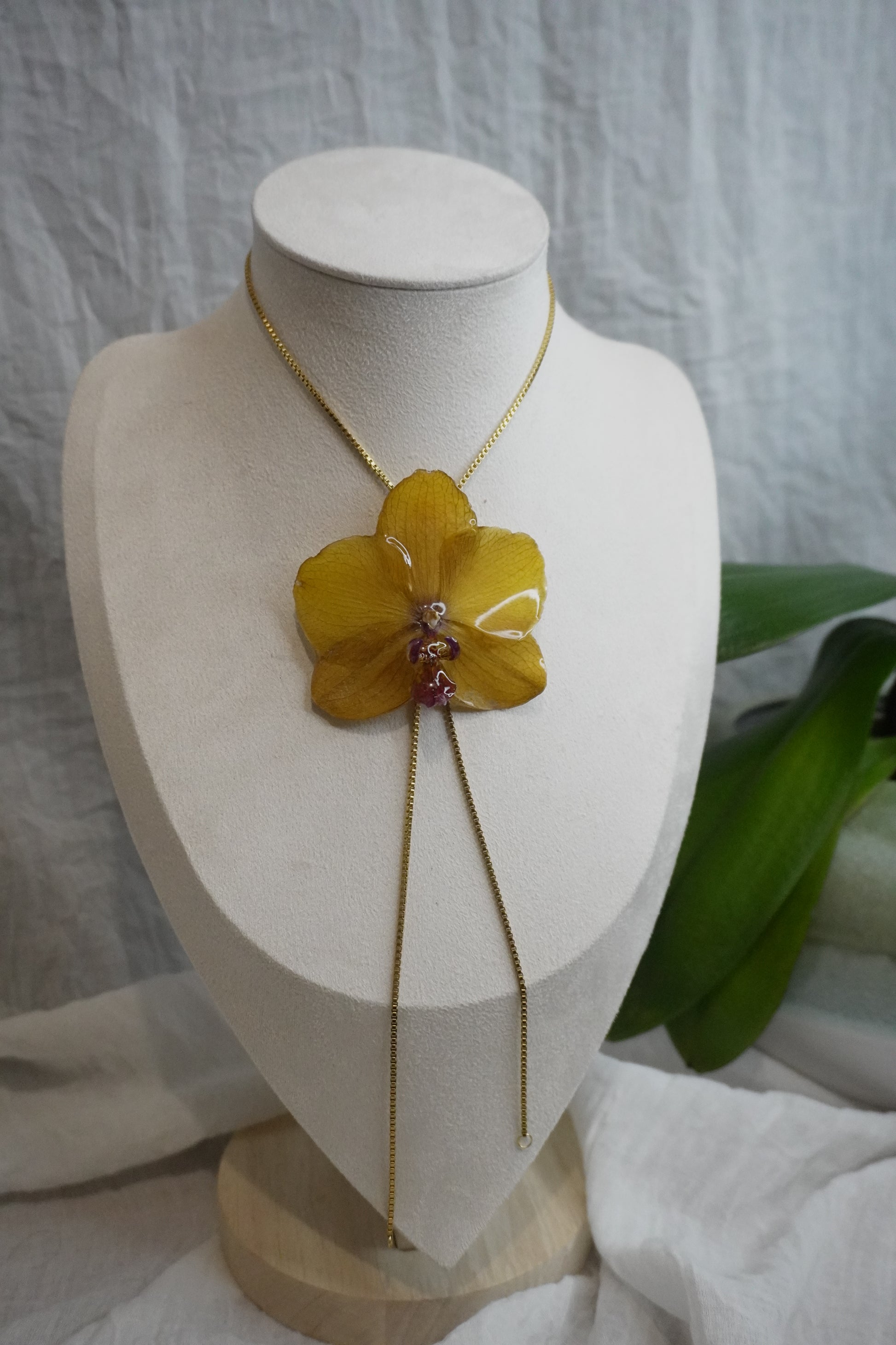 Ce bijou délicat est entièrement fait main, mettant en valeur de véritables fleurs séchées soigneusement conservées dans de la résine. Chaque création est unique : les fleurs, par leur forme et leurs nuances naturelles, rendent chaque bijou absolument singulier.