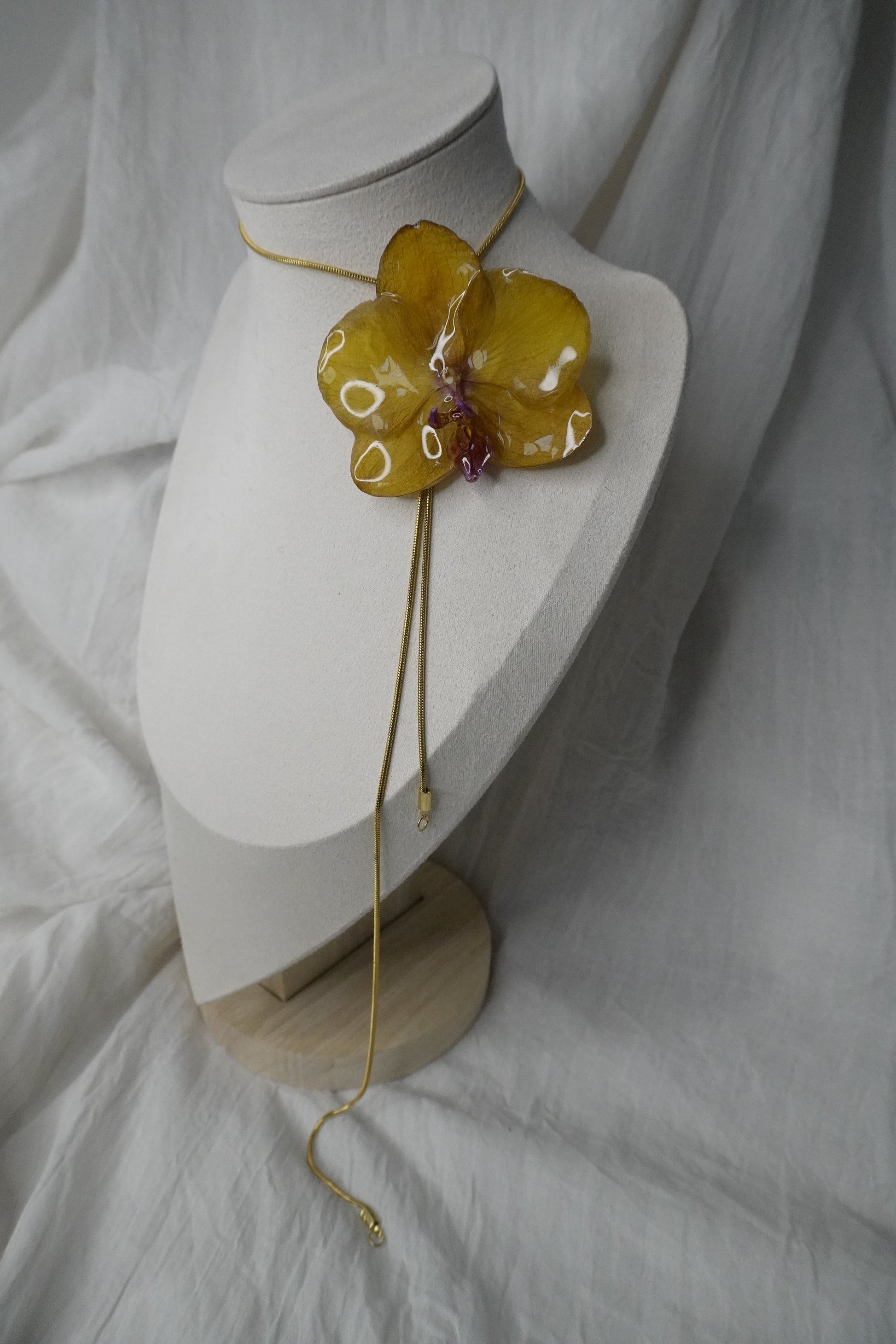 Ce bijou délicat est entièrement fait main, mettant en valeur de véritables fleurs séchées soigneusement conservées dans de la résine. Chaque création est unique : les fleurs, par leur forme et leurs nuances naturelles, rendent chaque bijou absolument singulier.