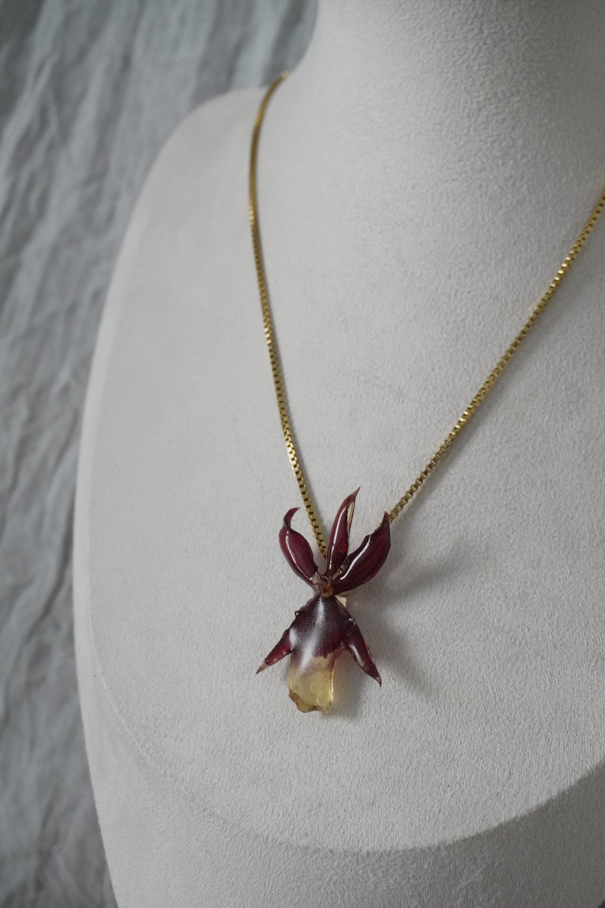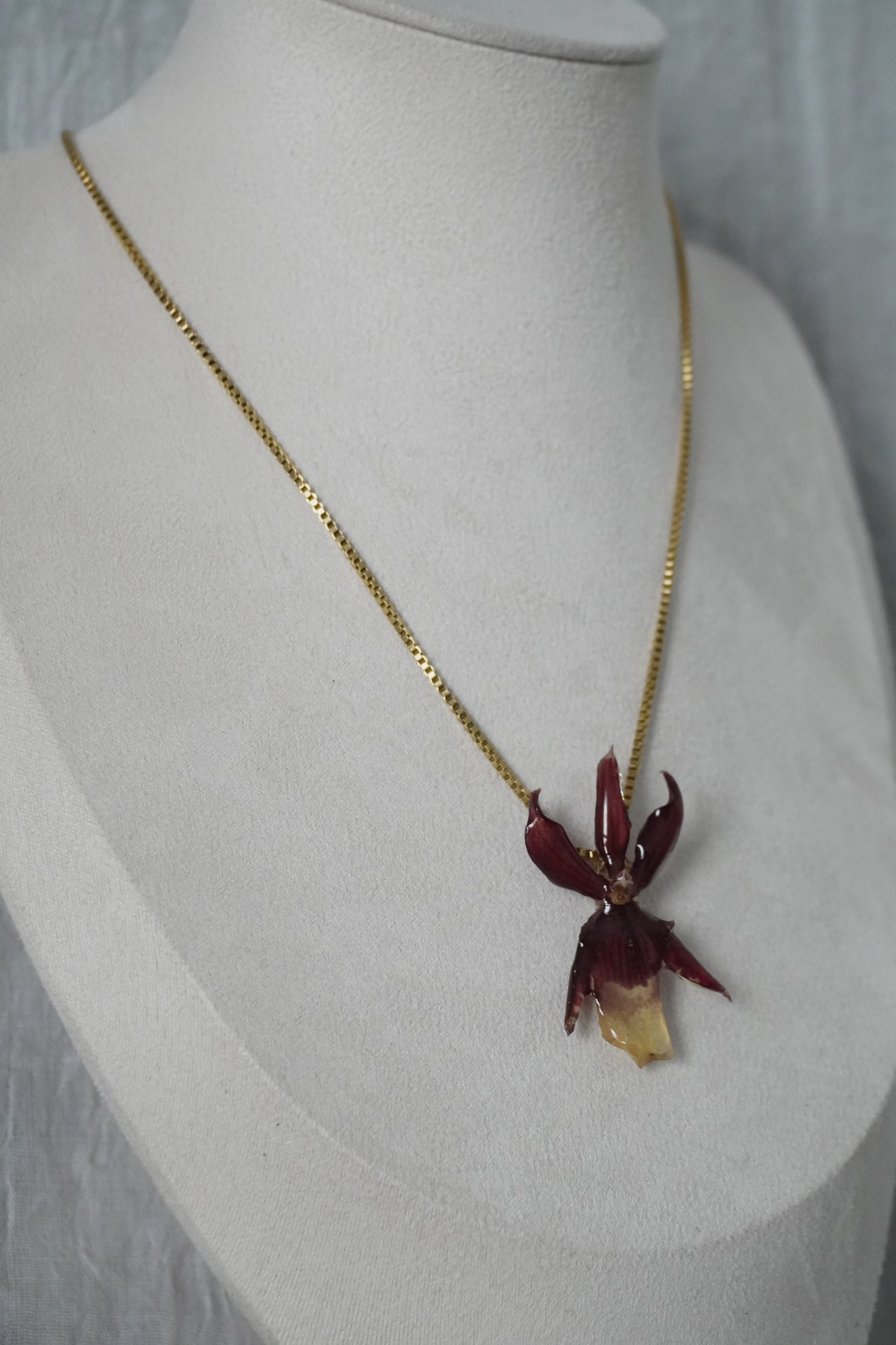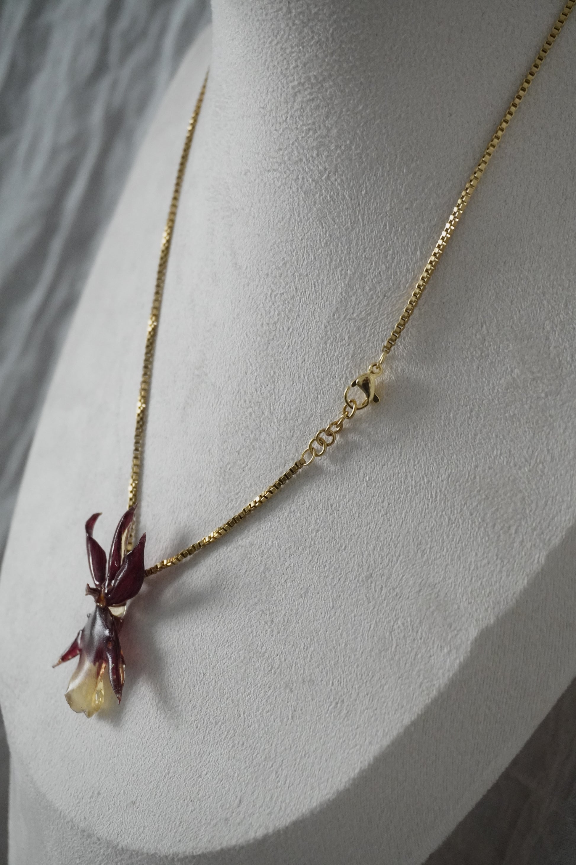 Ce bijou délicat est entièrement fait main, mettant en valeur de véritables fleurs séchées soigneusement conservées dans de la résine. Chaque création est unique : les fleurs, par leur forme et leurs nuances naturelles, rendent chaque bijou absolument singulier.