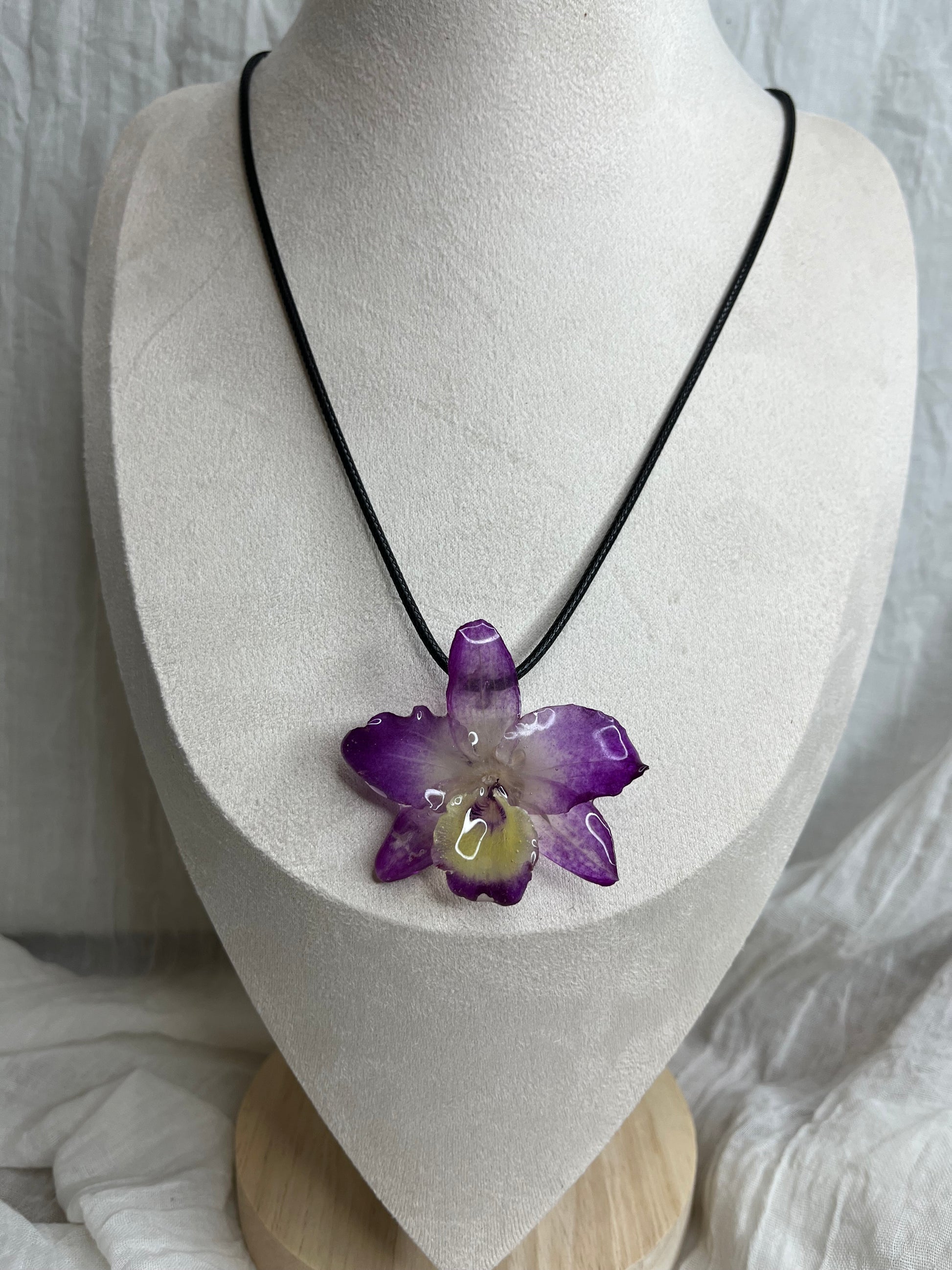 Collier fait main avec une vrai fleur sécher emprisonner dans la résine