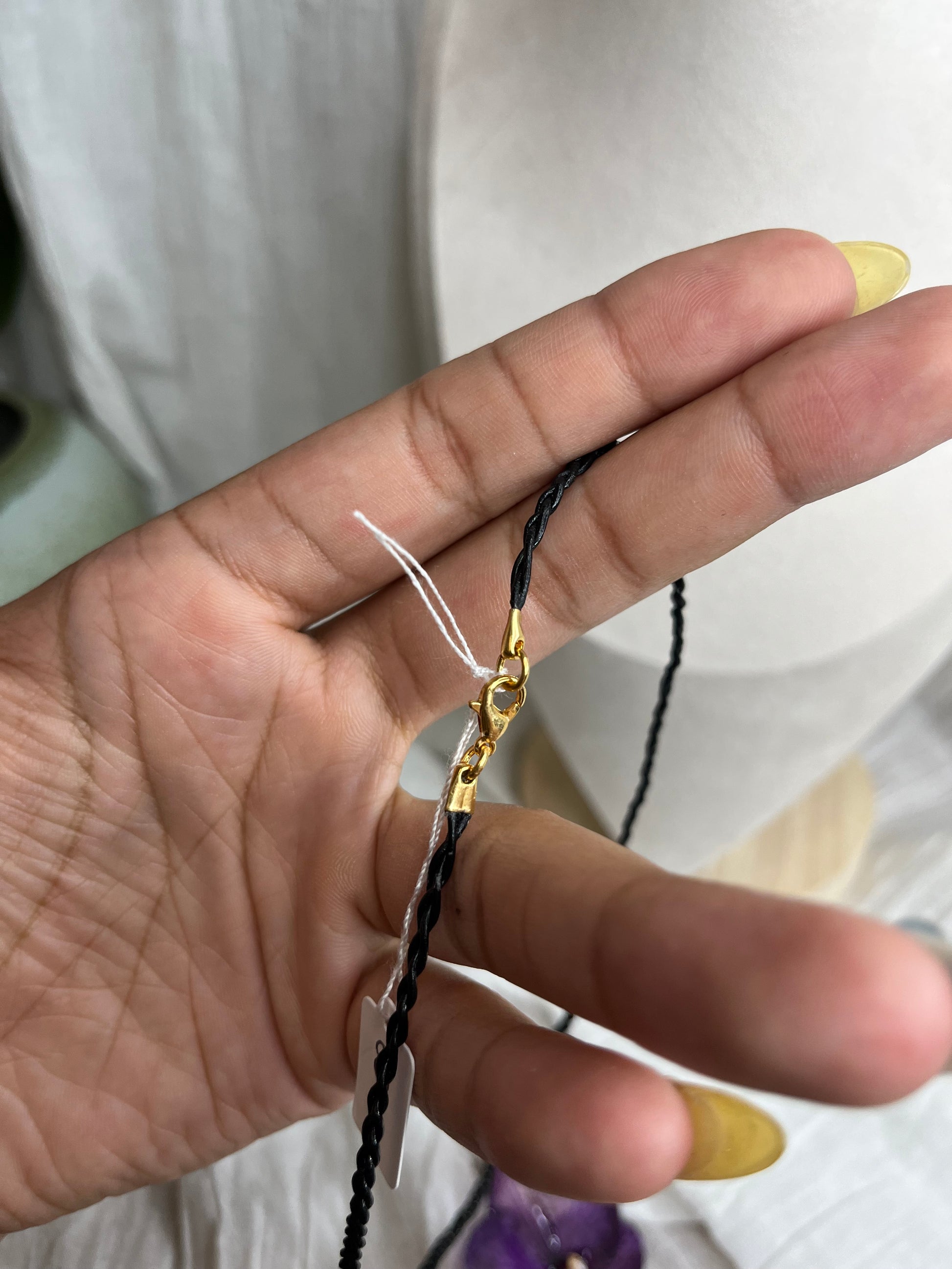 Collier fait main du cordon en cuir trésser et assemblage a la fleur sécher mis sous résine