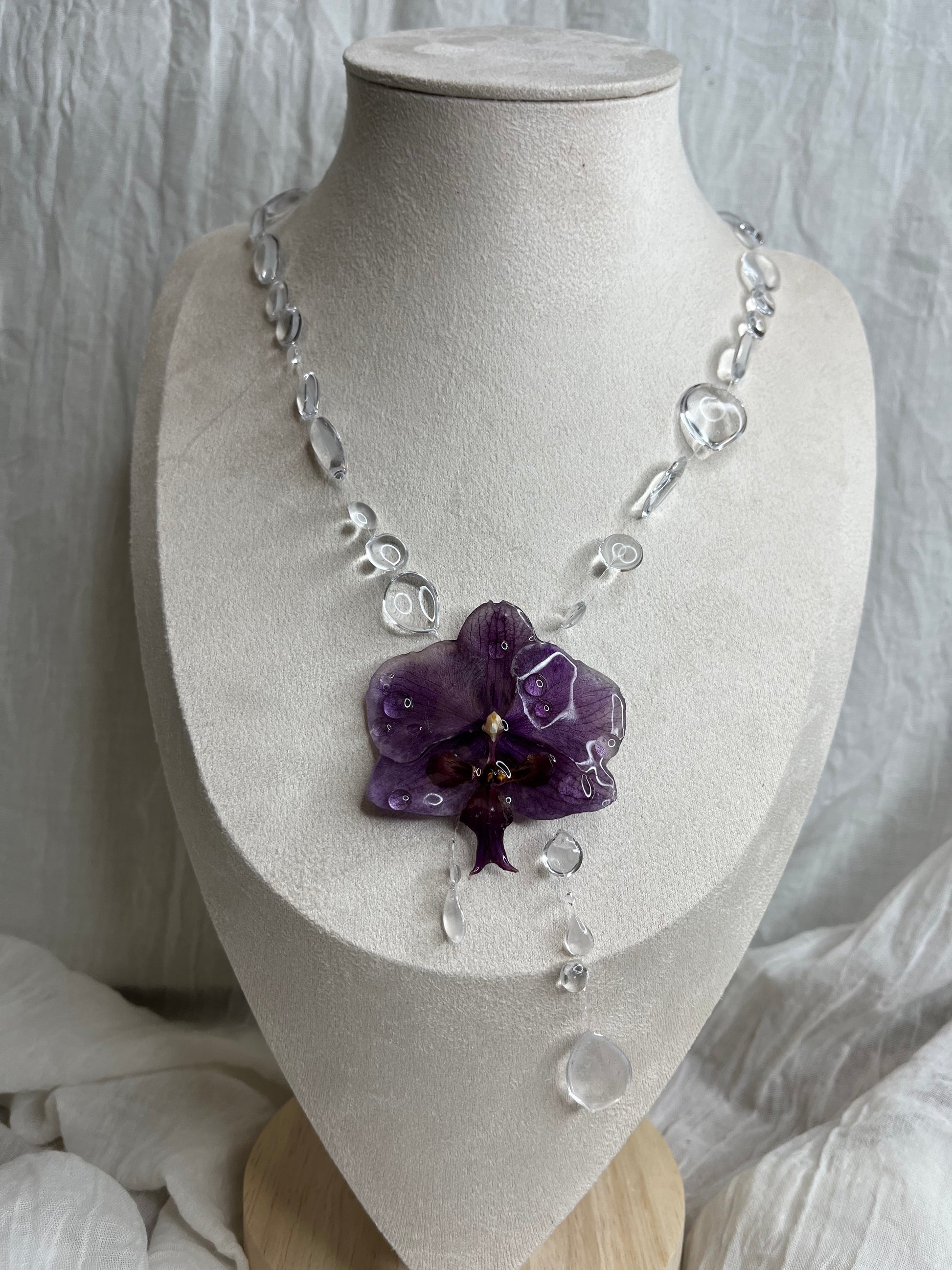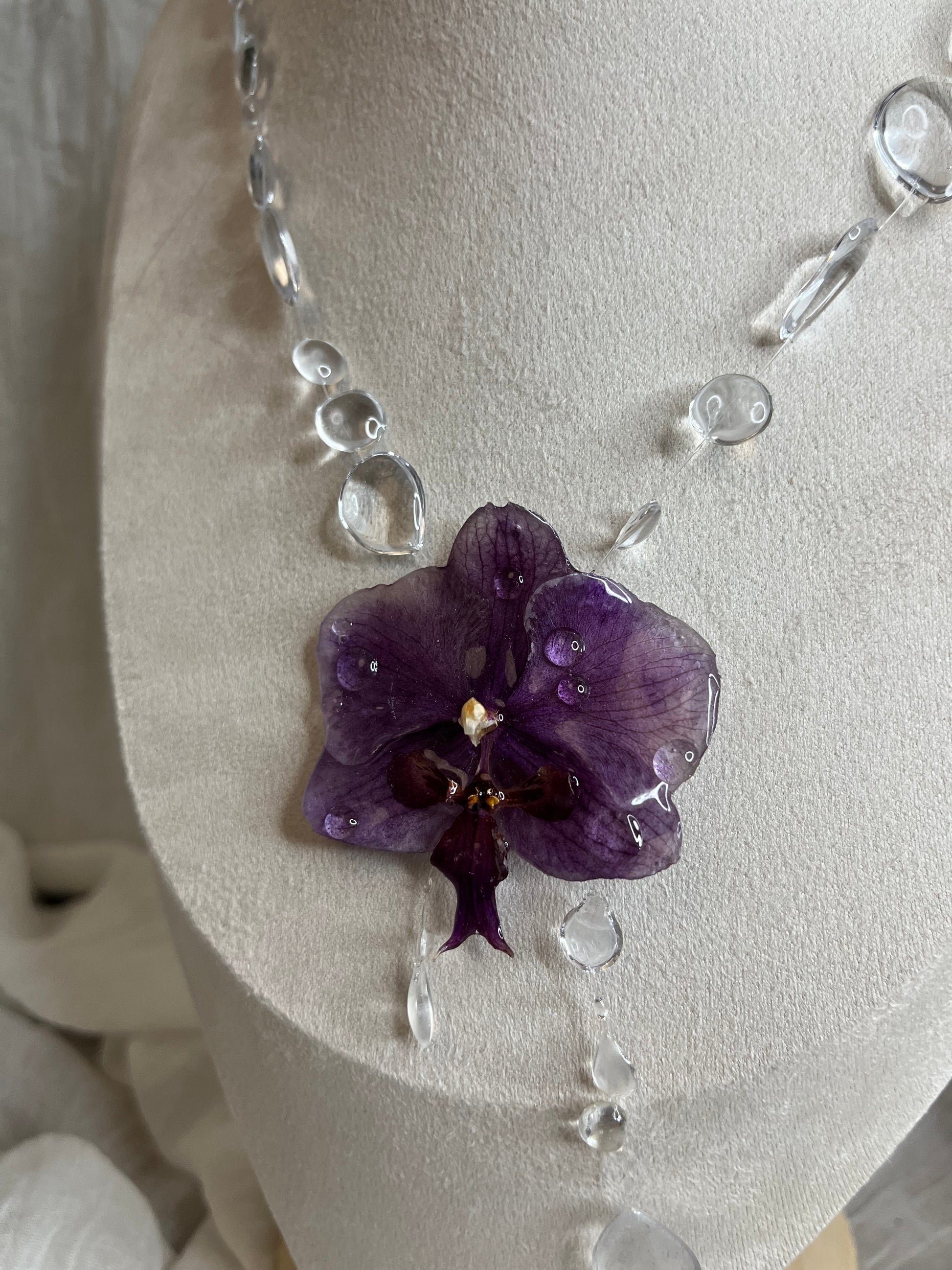 La fleur utilisé est une orchidée phalaenopsis sécher emprisonner dans la résine