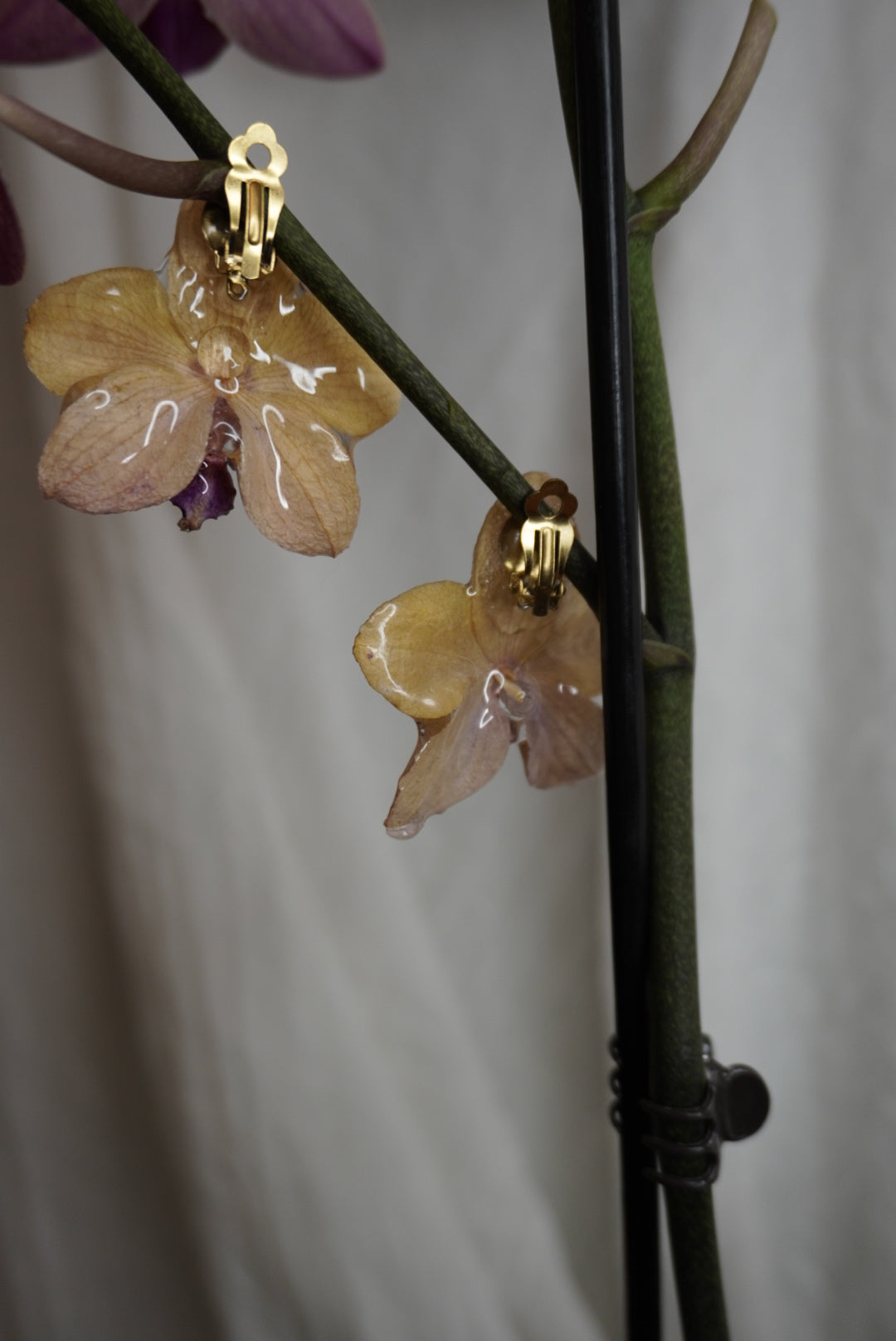 Boucle d’oreille faite main avec des vrais fleurs sécher et conserver dans la résine