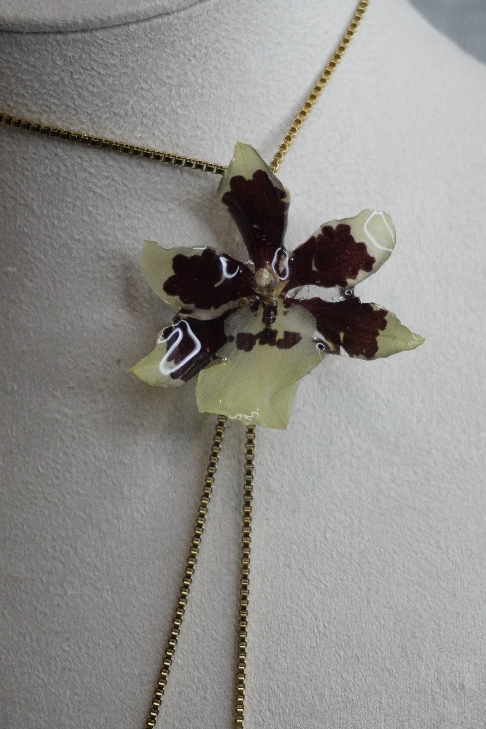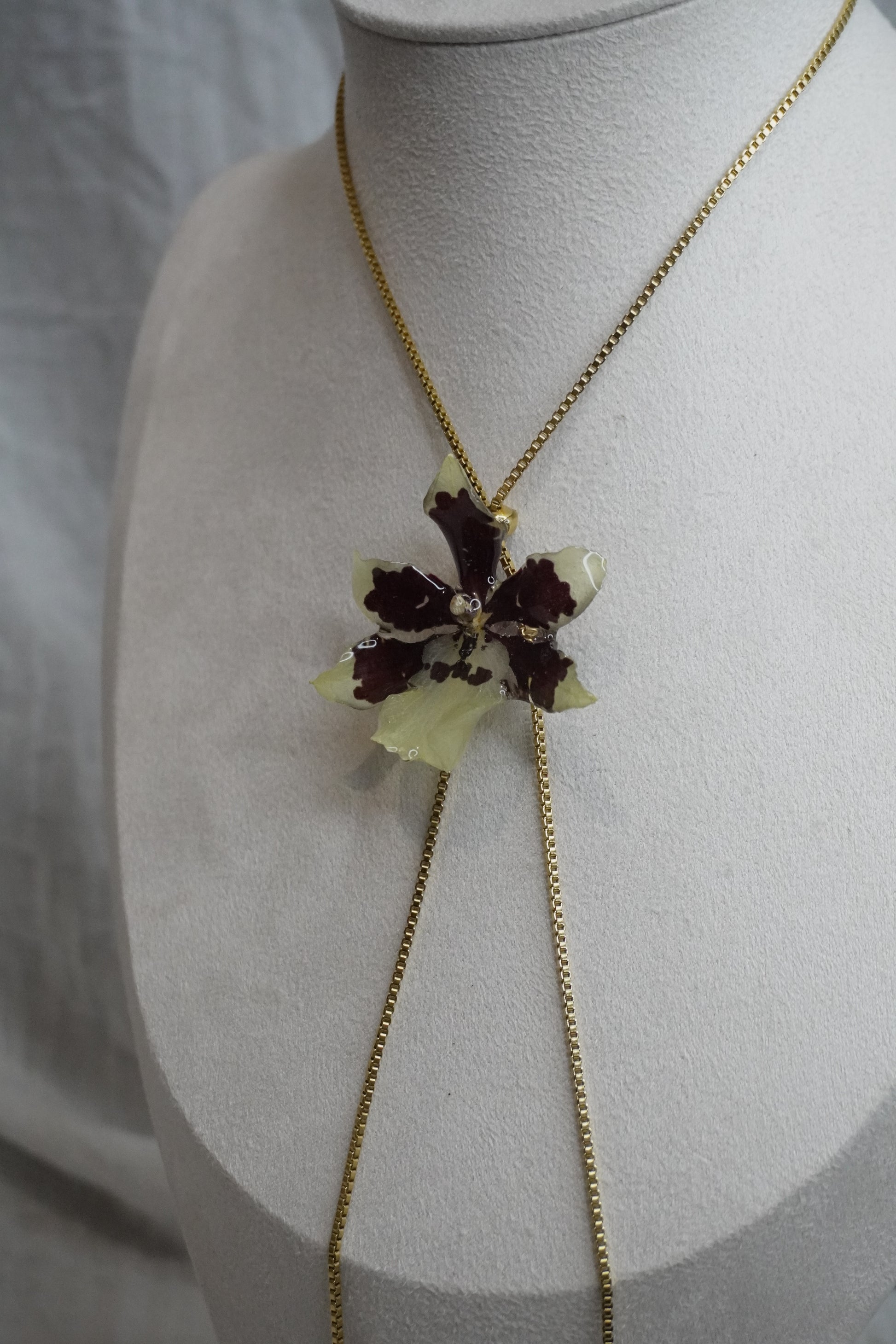 Ce bijou délicat est entièrement fait main, mettant en valeur de véritables fleurs séchées soigneusement conservées dans de la résine. Chaque création est unique : les fleurs, par leur forme et leurs nuances naturelles, rendent chaque bijou absolument singulier.